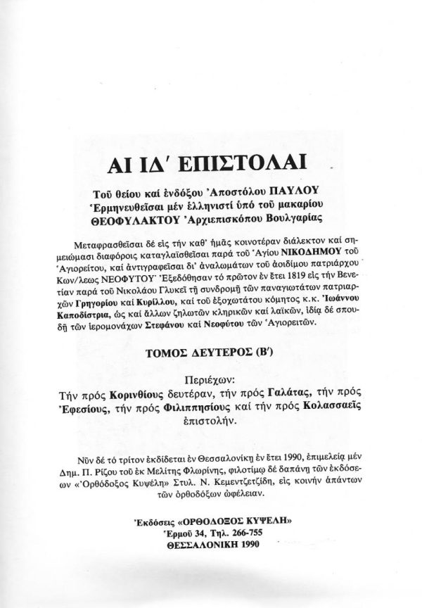 Ερμηνεία εις τας ΙΔ΄ επιστολάς του αποστόλου Παύλου, τόμος Β΄