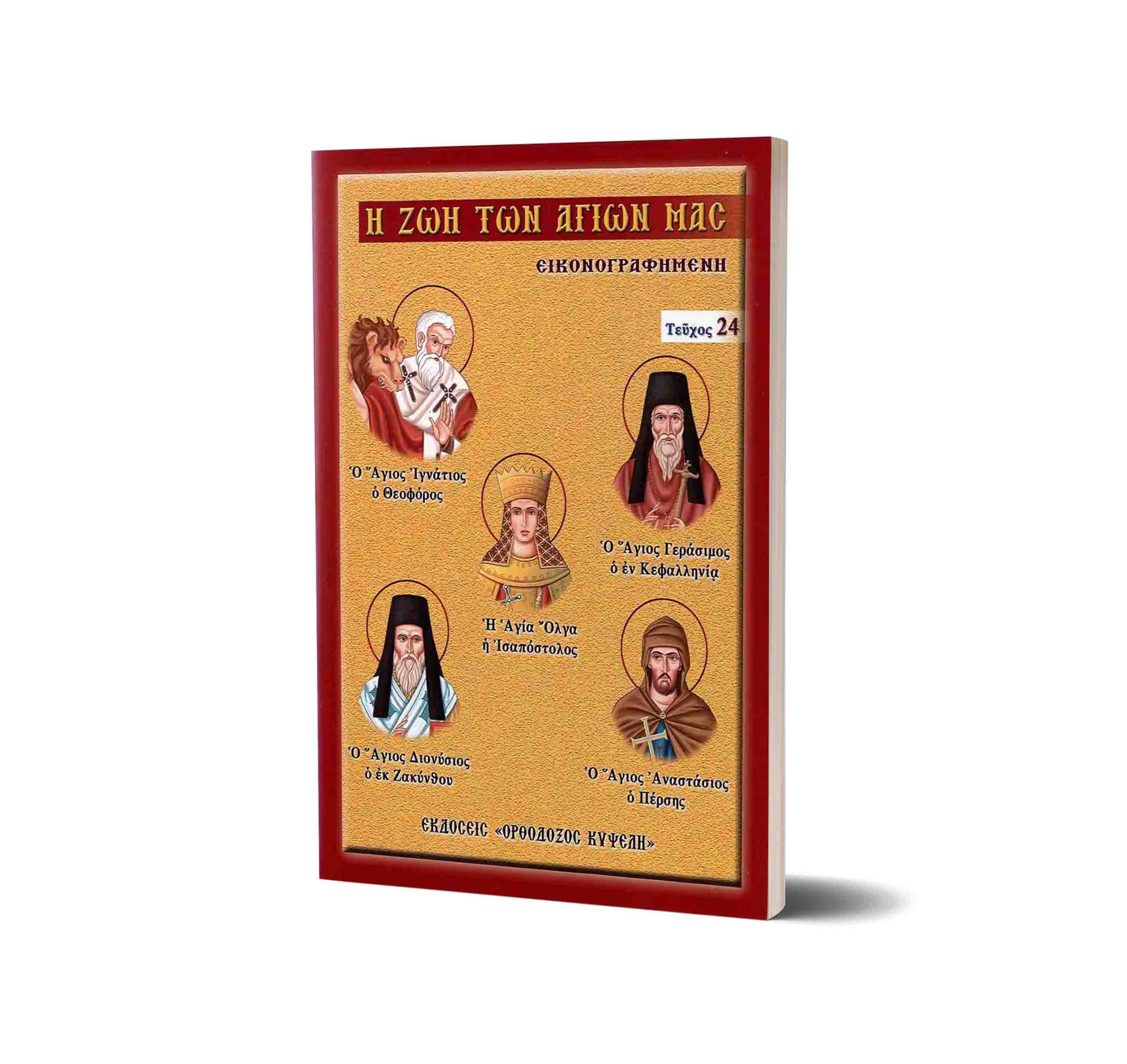 Εικονογραφημένοι βίοι αγίων για παιδιά: άγιος Ιγνάτιος θεοφόρος, αγία Όλγα ισαπόστολος, άγιος Γεράσιμος, άγιος Διονύσιος, άγιος Αναστάσιος Πέρσης.