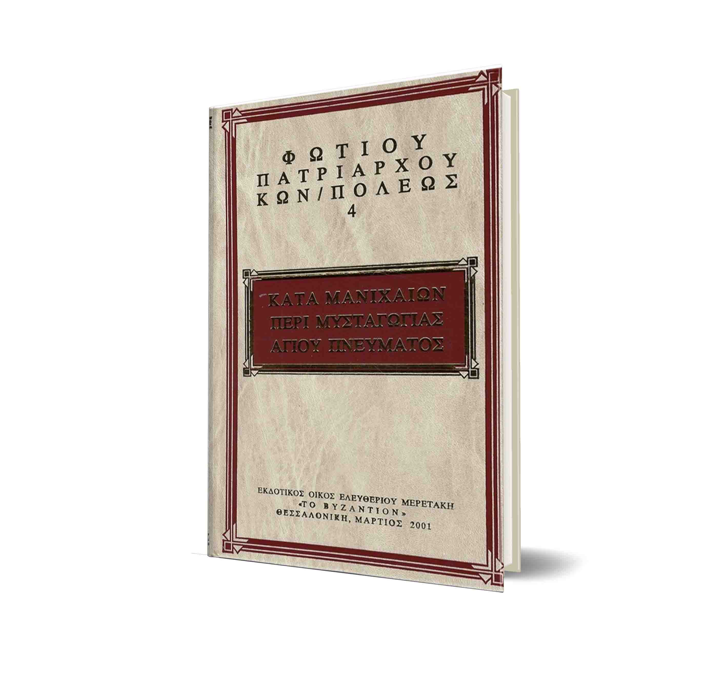 4ος Φωτίου Κων/πόλεως: Α’. Δογματικά: 1. Διήγηση περί της Μανιχαίων αναβλαστήσεως, σε Λόγους Δ’.- 2. Περί της Μυσταγωγίας του αγίου Πνεύματος. -3. Κατά των της Παλαιάς Ρώμης περί της εκπορεύσεως του αγίου Πνευμάτος, ότι από μόνον τον Πατέρα εκπορεύεται.