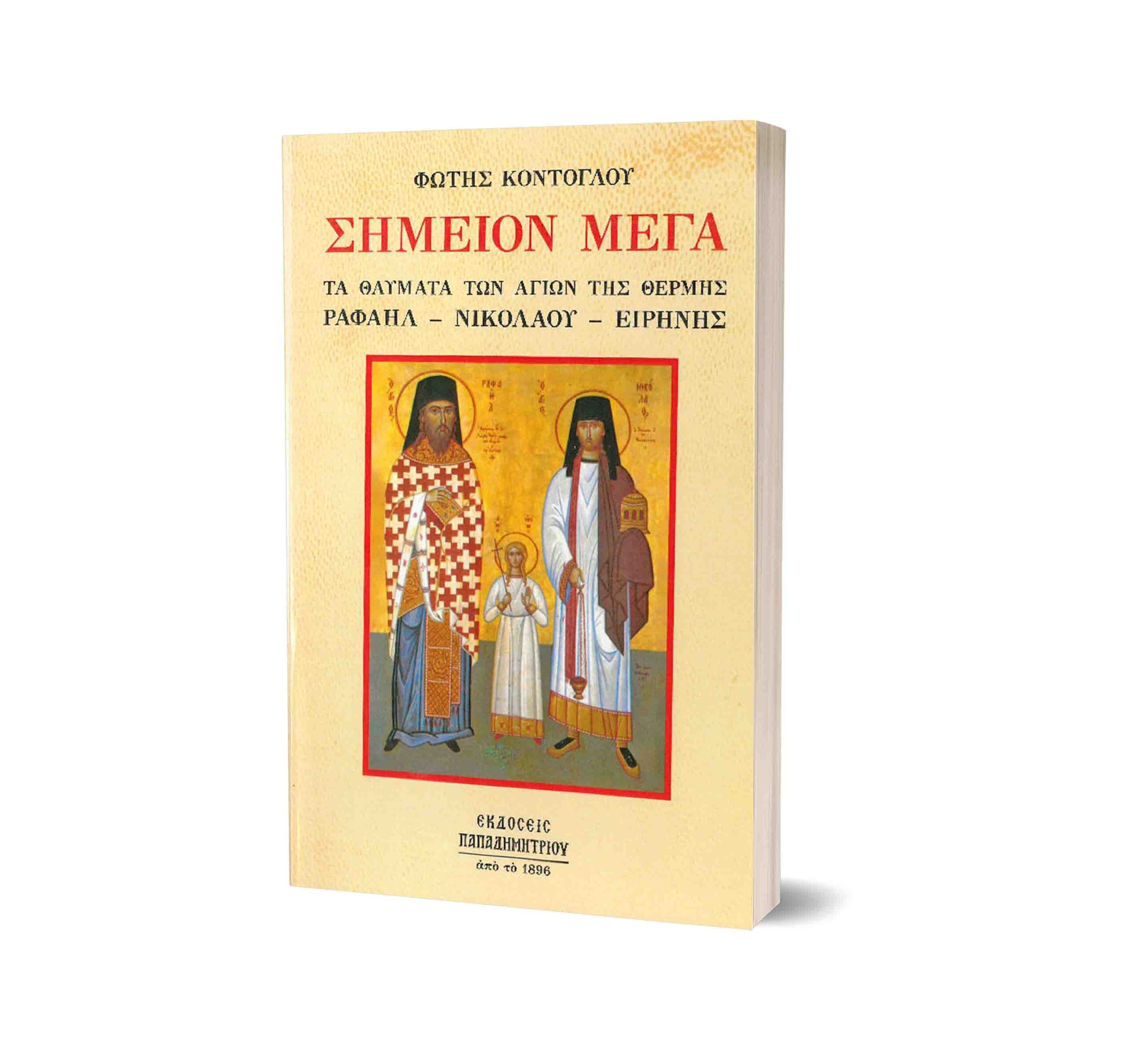 Τα θαύματα των αγίων της Θερμής (Μυτιλήνης), Ραφαήλ, Νικολάου και Ειρήνης. Το πρώτο βιβλίο που γράφτηκε γι’ αυτούς τους νεοφανείς και θαυματουργούς αγίους.