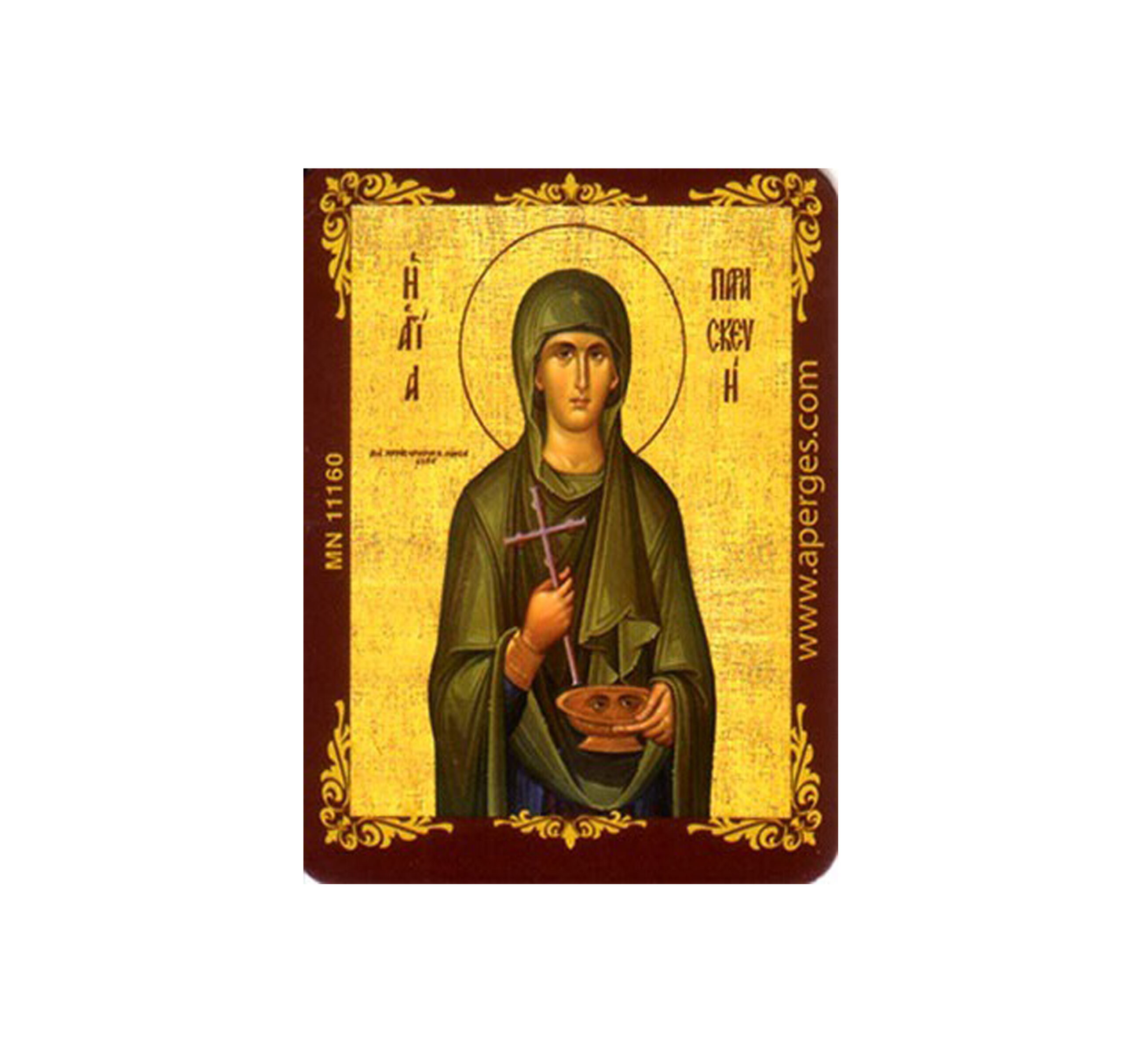 Μαγνητάκι εύκαμπτο όπου απεικονίζεται η βυζαντινή εικόνα της Μεγαλομάρτυρος Αγίας Παρασκευής σε διάσταση 5 Χ 6 εκατοστά.