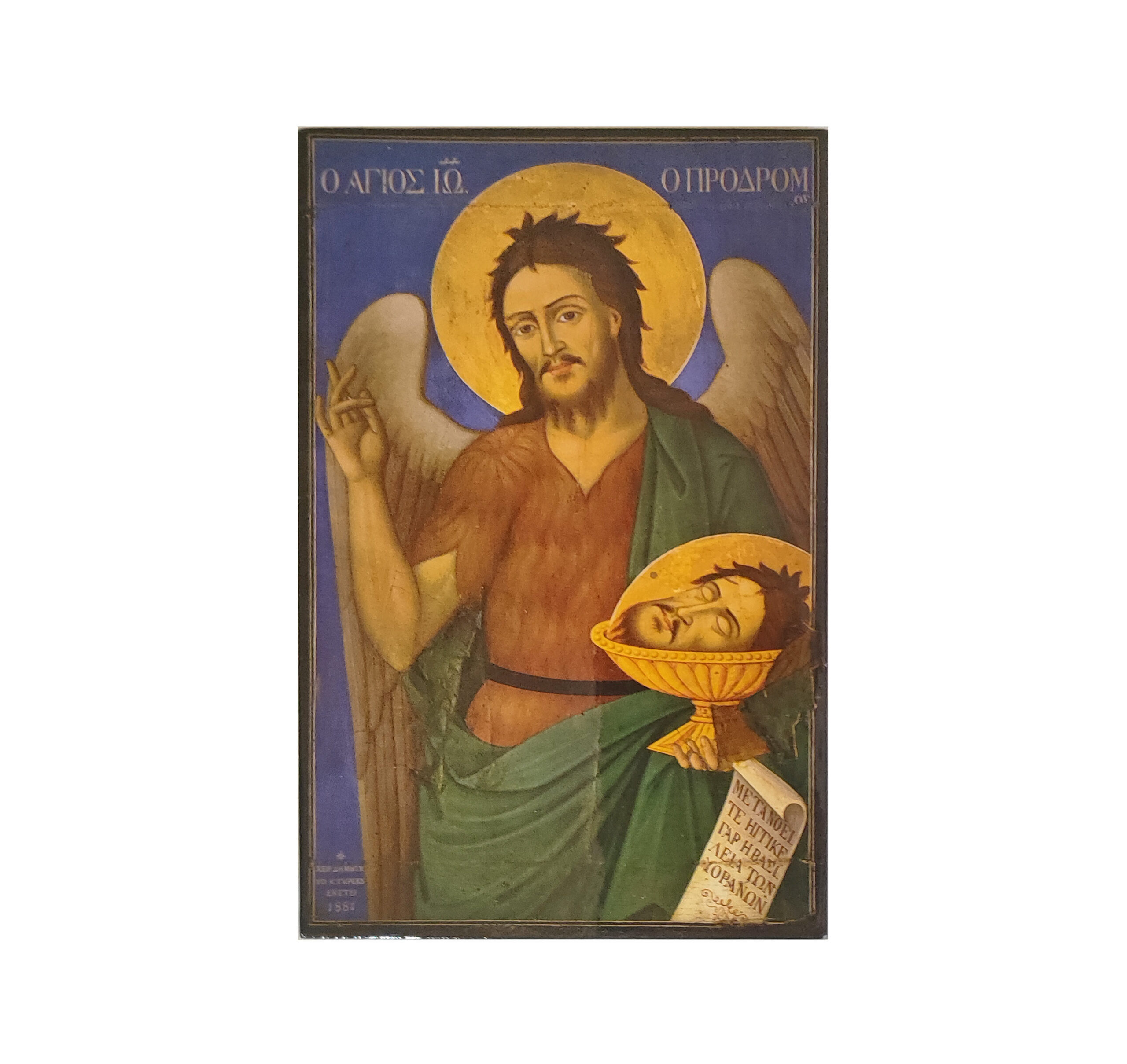 Αντίγραφο εικόνος του 1881 σε ξύλο όπου απεικονίζεται ο Άγιος Ιωάννης ο Πρόδρομος.