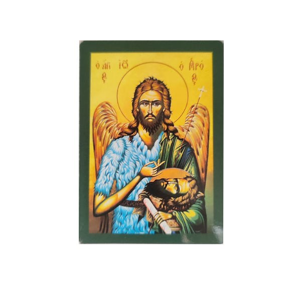 Μαγνητάκι εύκαμπτο όπου απεικονίζεται η βυζαντινή εικόνα του Αγίου Ιωάννη του Προδρόμου σε διάσταση 6 Χ 8,50 εκατοστά.