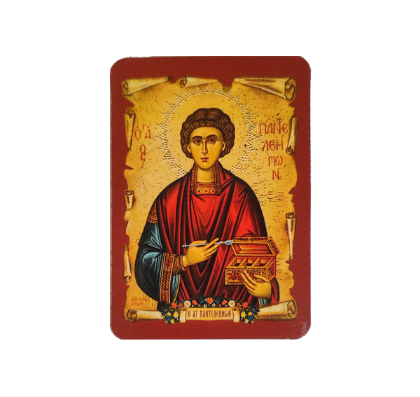 Μαγνητάκι εύκαμπτο όπου απεικονίζεται η βυζαντινή εικόνα του Αγίου Παντελεήμωνος σε διάσταση 6 Χ 8,50 εκατοστά.