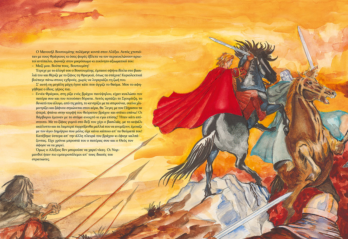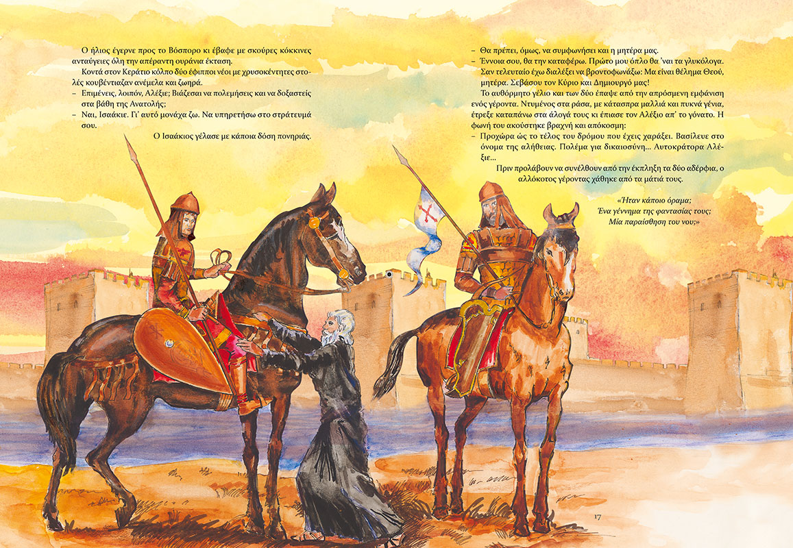 Κάποτε στο Βυζάντιο… Ο Βασιλιάς Αλέξιος Κομνηνός παλεύει με τα κύματα των Βαρβάρων σε Ανατολή και Δύση. Η Κωνσταντινούπολη κινδυνεύει από τους άπληστους Σταυροφόρους. Οι Τούρκοι πλησιάζουν τη Βασιλεύουσα. Ένα βυζαντινό έπος που κόβει την ανάσα. Εικόνες του χτες σε μια ιστορία που θυμίζει την εποχή μας! Η Ρωμιοσύνη απειλείται με αφανισμό και αντιστέκεται… Μια συναρπαστική χρονογραφία σαν παραμύθι. Ένα μαγικό ταξίδι στο χώρο της ιστορίας και της γνώσης.