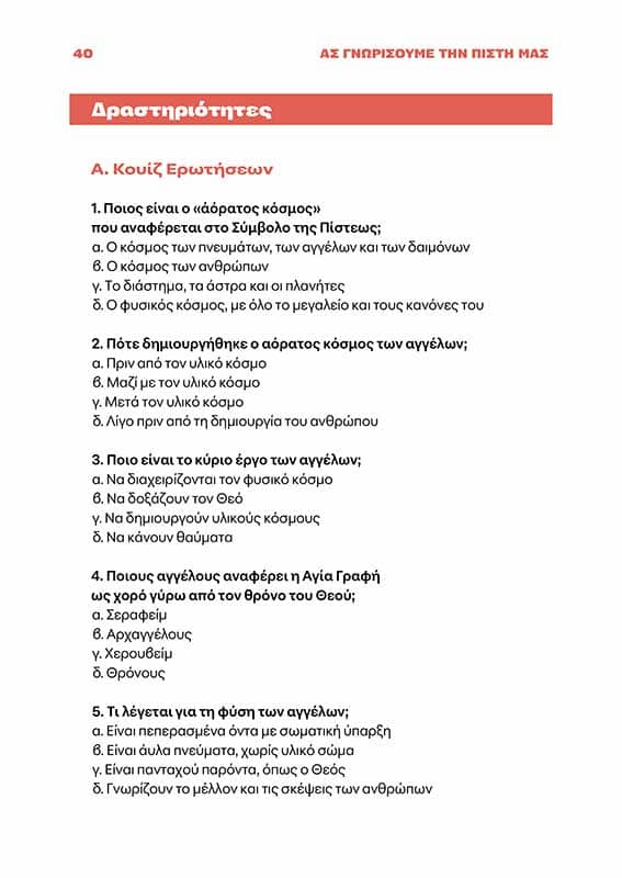 Περιέχει 24 ενότητες και αντίστοιχες δραστηριότητες, που βοηθούν στην εμπέδωση της κάθε ενότητας. Ένας οδηγός ορθόδοξης κατήχησης για παιδιά από 12 ετών και για κάθε αναγνώστη που επιθυμεί να γνωρίσει βαθύτερα την ορθόδοξη πίστη.