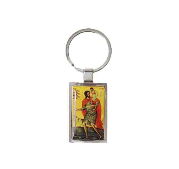 Κλειδοθήκη επάργυρη μεταλλική με αυτοκόλλητο σμάλτο την εικόνα του Αγίου Χριστοφόρου.