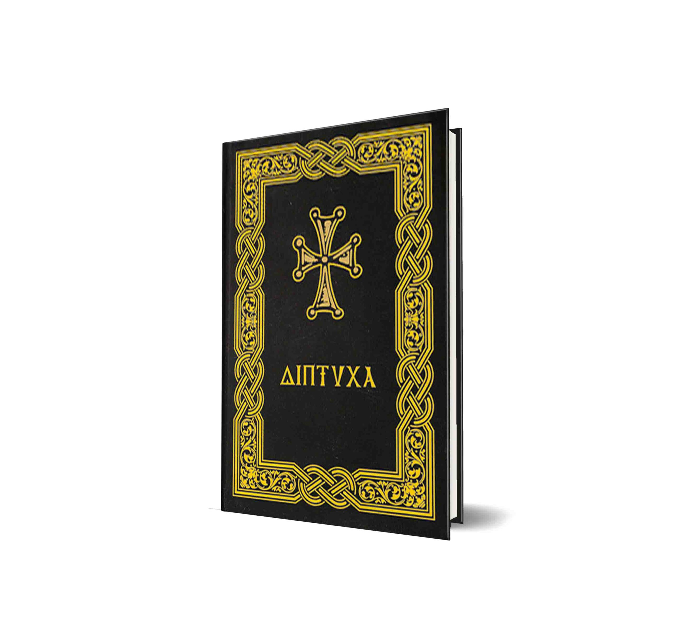 Δερματόδετο εγκόλπιο με χρυσοτυπία. Περιέχει φύλλα μνημονεύσεως Υπέρ Υγείας και Υπέρ Αναπαύσεως.