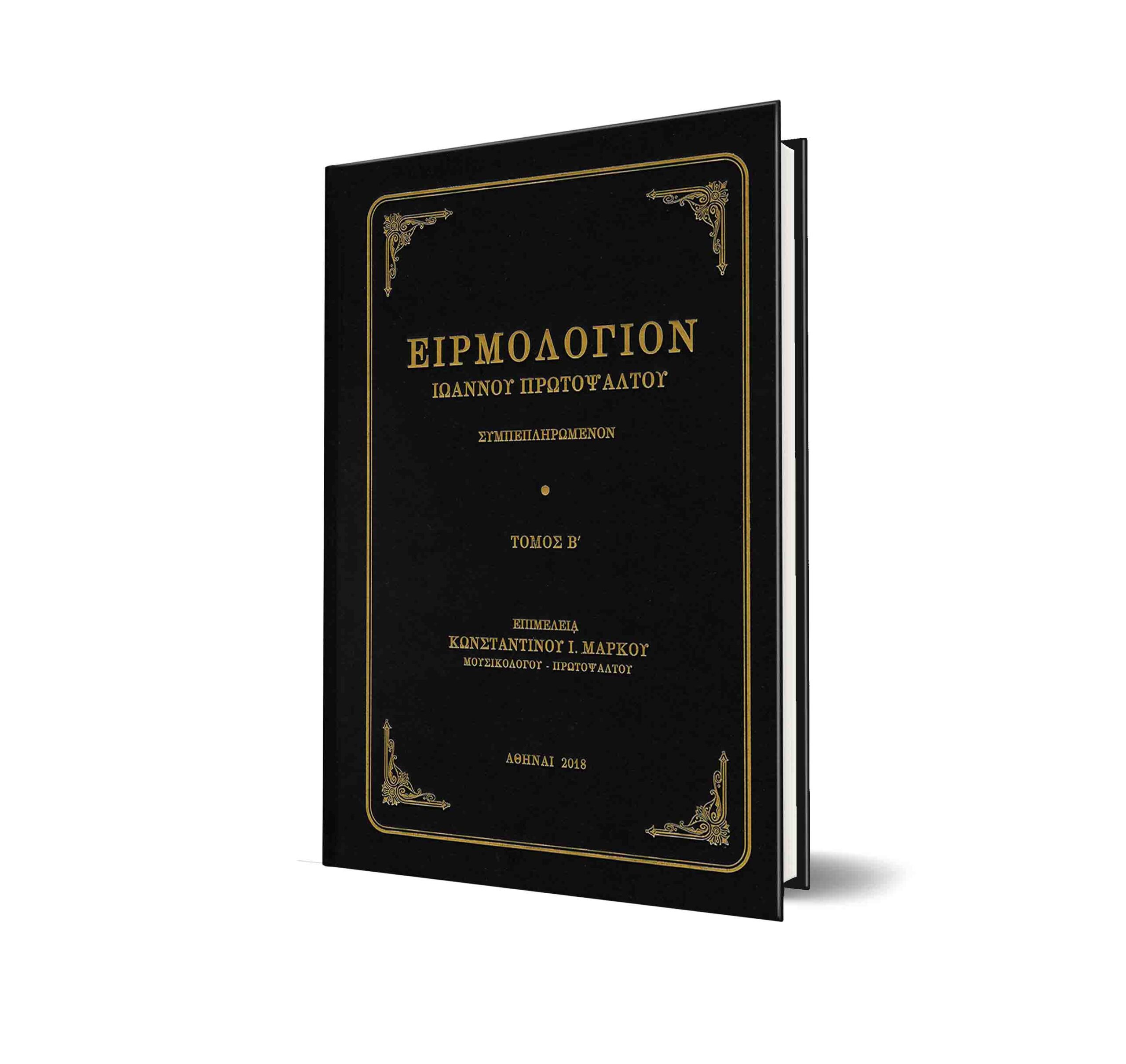Ειρμολόγιον Ιωάννου πρωτοψάλτου, συμπεπληρωμένον, τόμ. Β’, υπό Κωνσταντίνου Ι. Μάρκου, μουσικολόγου-πρωτοψάλτου.