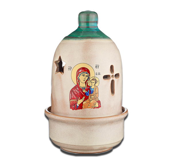 Επιτραπέζιο κεραμικό δίχρωμο καντήλι σήμαντρο – Θεομήτωρ