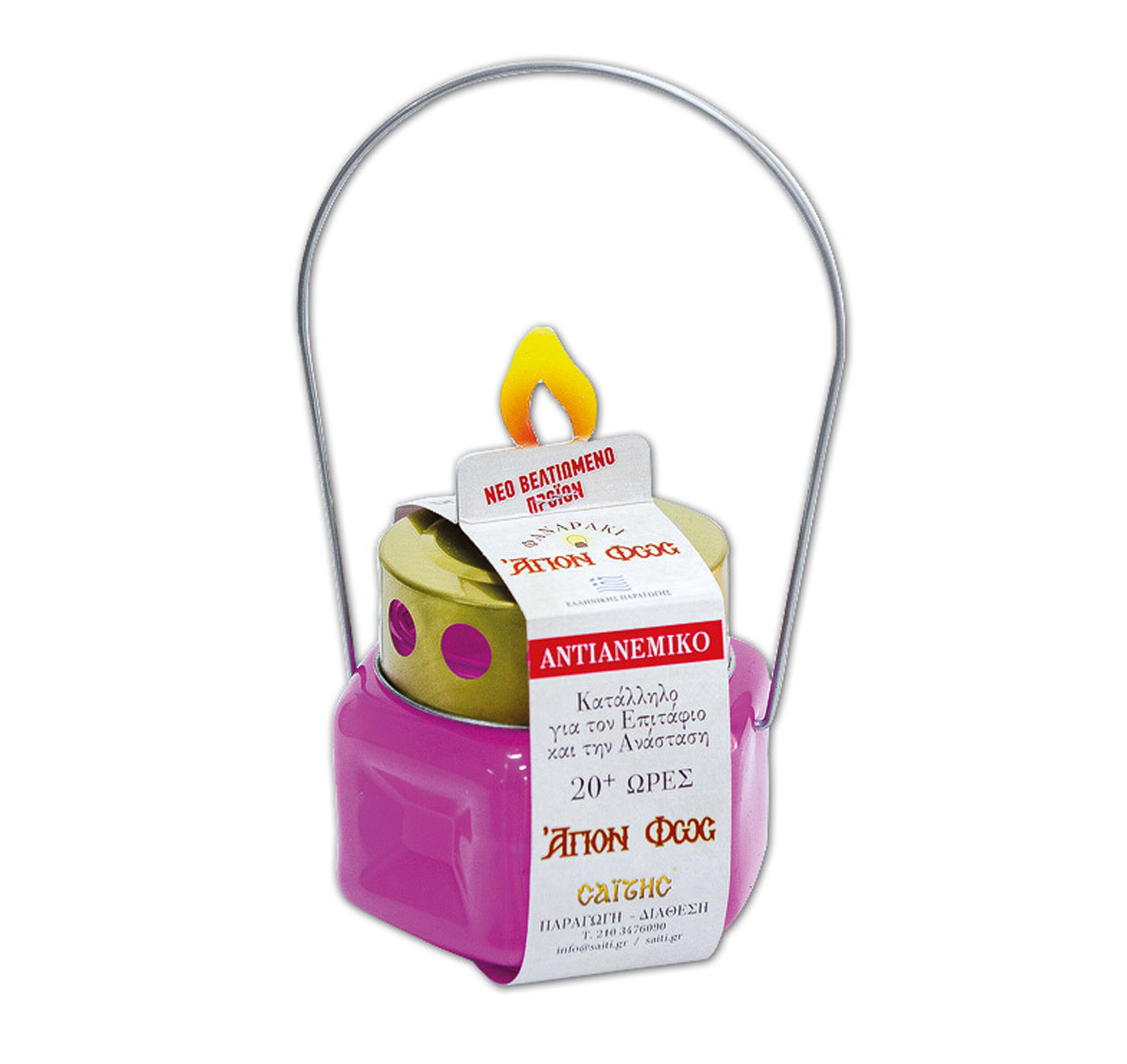 Φαναράκι σε ροζ χρώμα, μακράς διάρκειας (20+ ώρες) αντιανεμικό με κερί κατάλληλο για την περιφορά του Επιταφίου την Μεγάλη Παρασκευή και την Ακολουθία της Αναστάσεως.