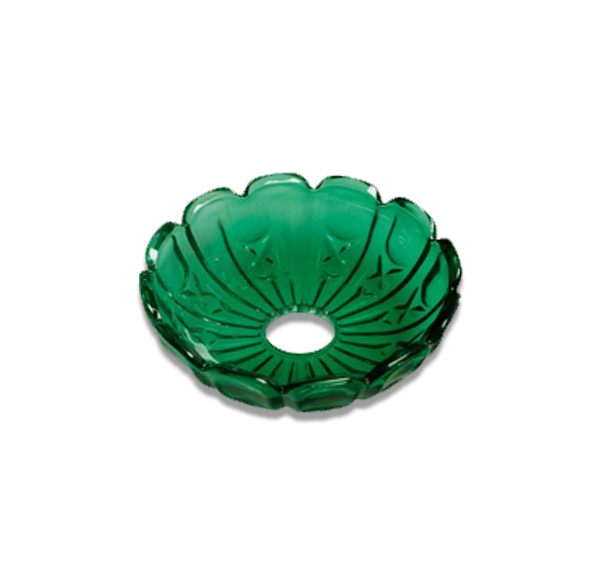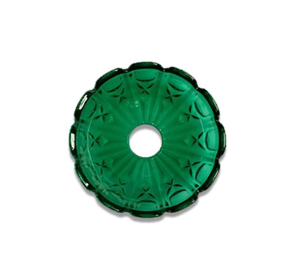 Γυάλινο σκαλιστό πιατάκι με τρύπα στο κέντρο (2,6 εκ.) για κηροπήγια και πολυελαίους.