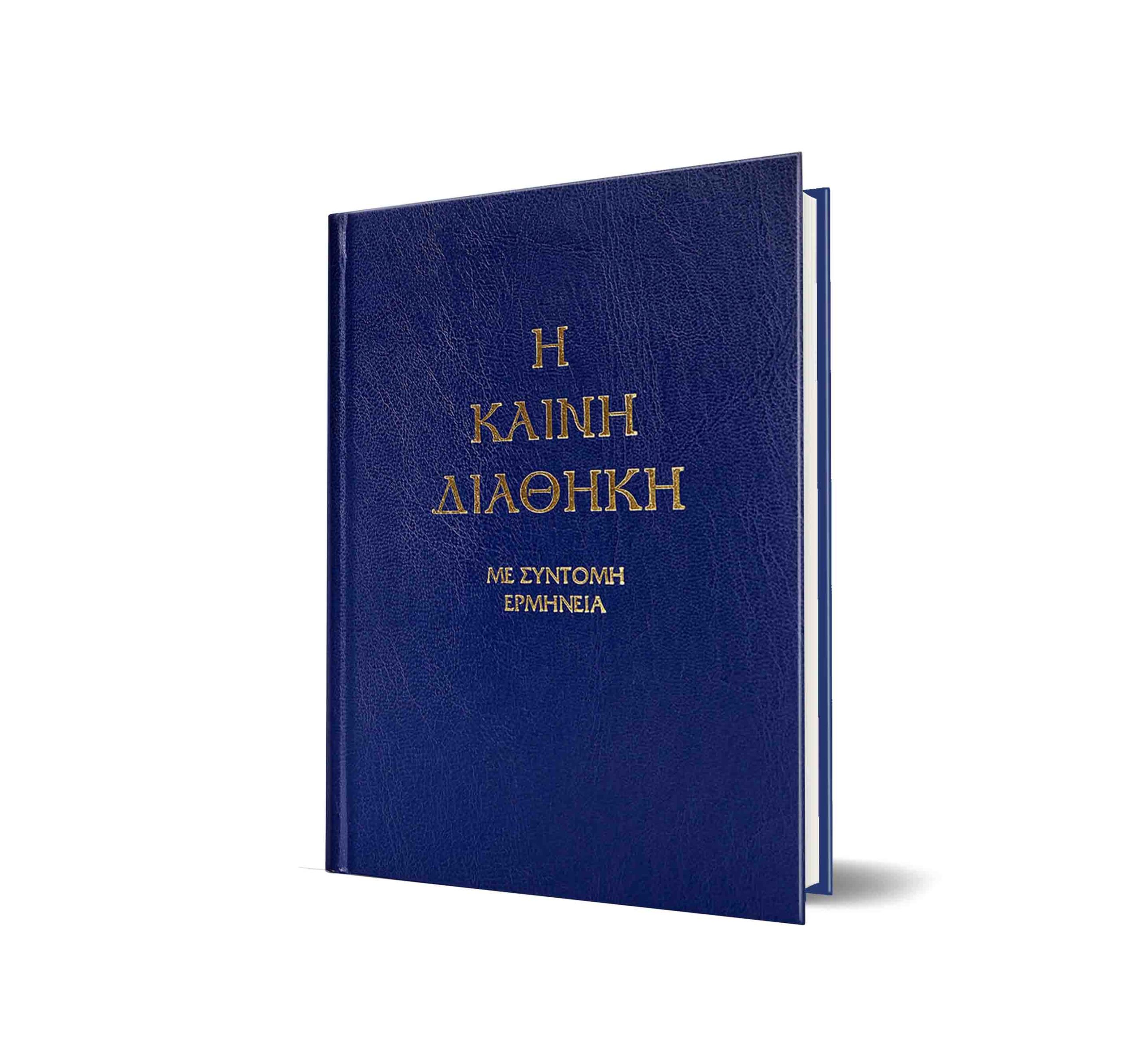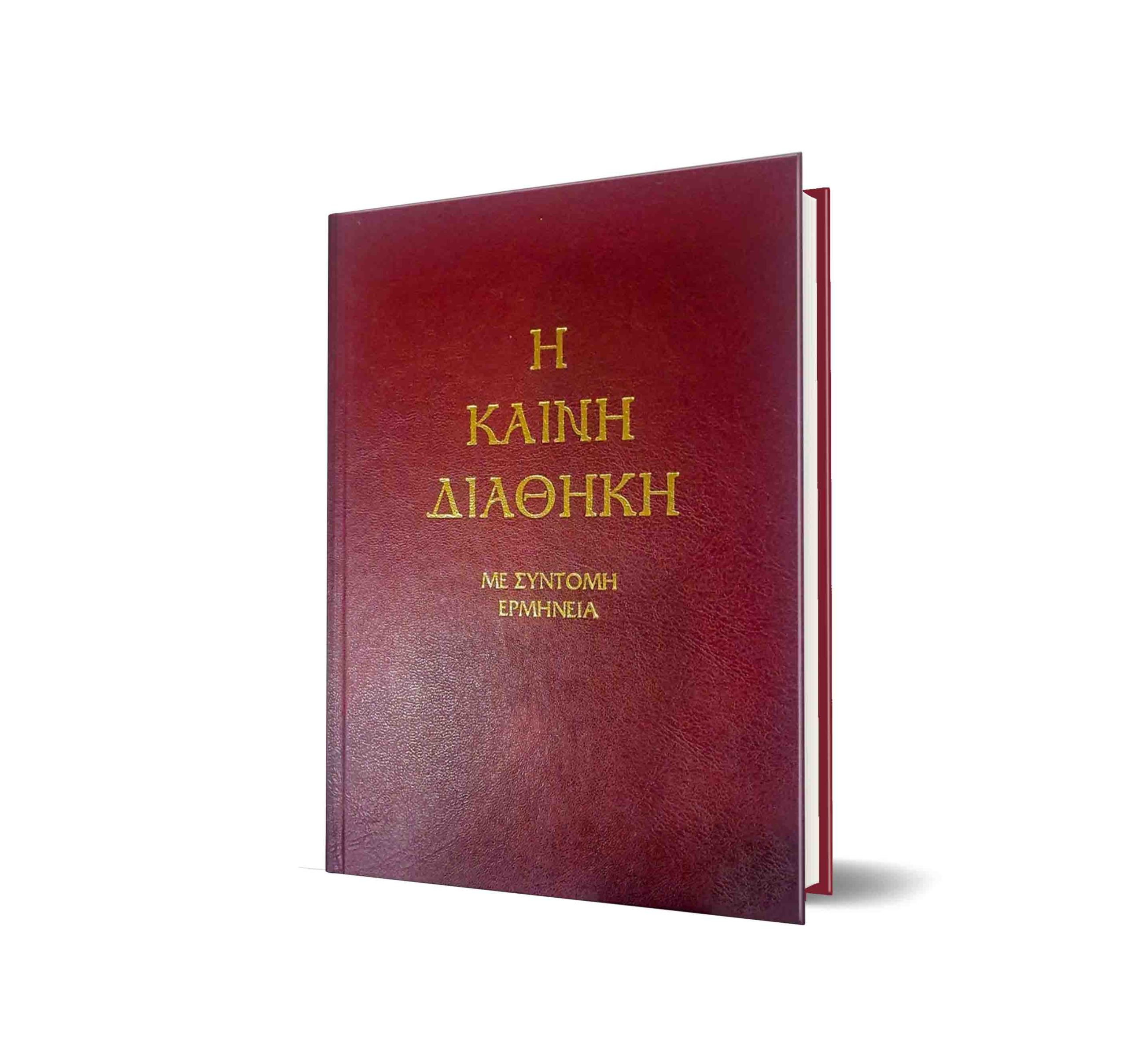 Η Καινή Διαθήκη με το πρωτότυπο κείμενο και παράλληλη σύντομη ερμηνεία στη δημοτική γλώσσα.