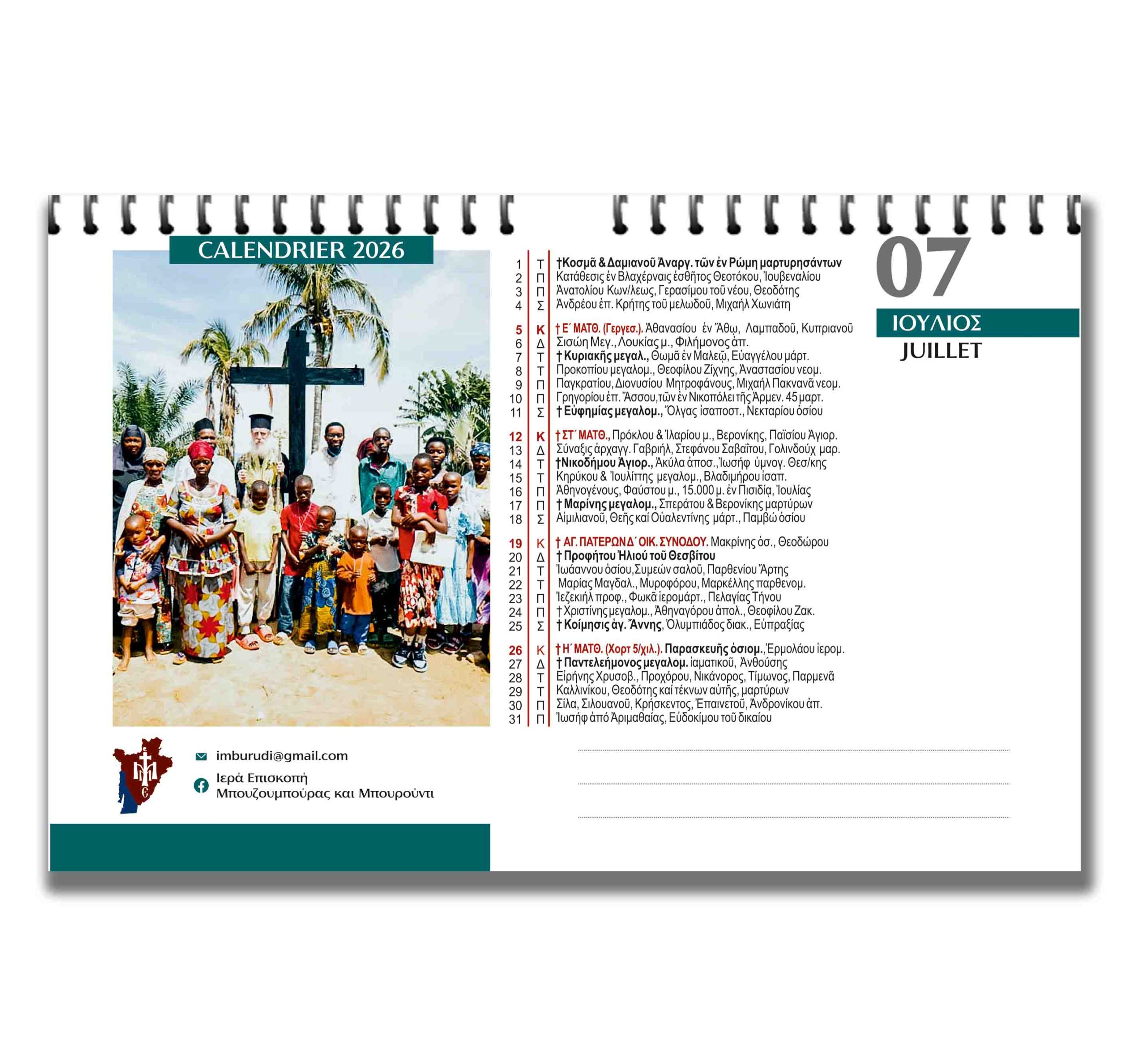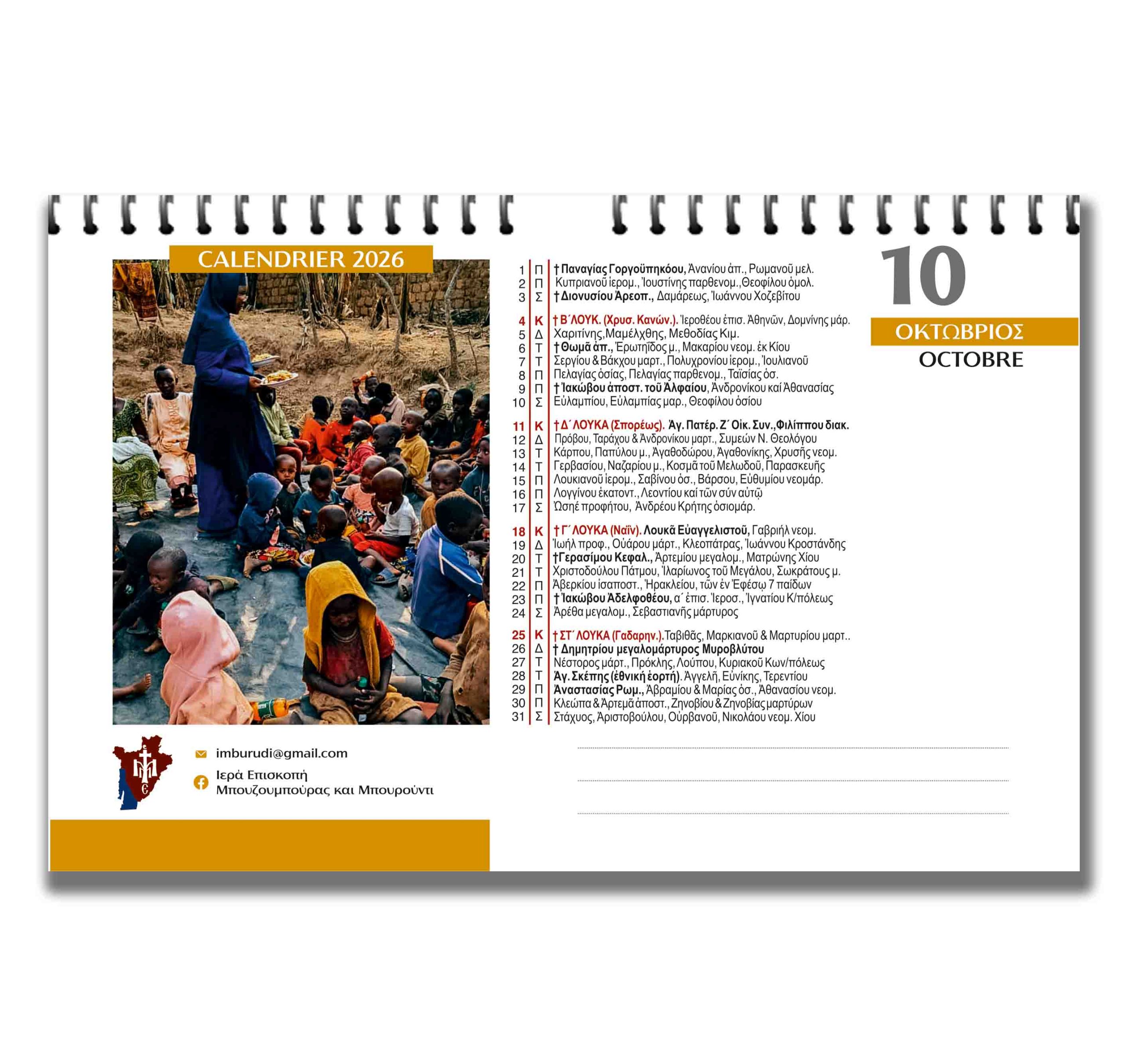 Ημερολόγιο μηναίο 2026 – Εξωτερικής Ιεραποστολής στην Αφρική
