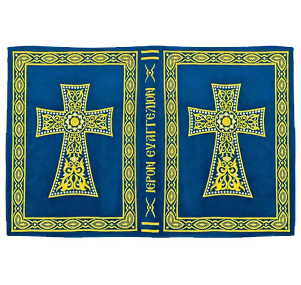 Υφαντό εξωτερικό κάλυμμα του Ιερού Ευαγγελίου, μεγάλου μεγέθους των εκδόσεως της Αποστολικής Διακονίας της Εκκλησίας της Ελλάδος.
