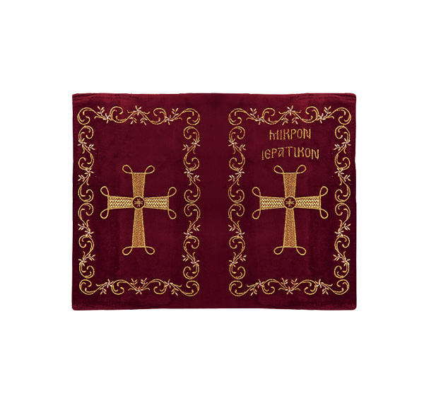 Βελούδινο κάλυμμα για το Μικρόν Ιερατικόν των εκδόσεων της Αποστολικής Διακονίας της Εκκλησίας της Ελλάδος, με χρυσοκέντητο Σταυρό εντός πλαισίου.