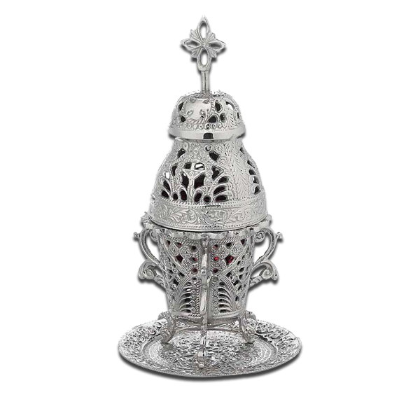Επιτραπέζιο επινικελωμένο σκαλιστό οικιακό καντήλι με πιατάκι.