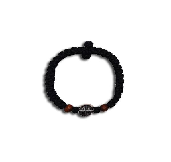 Κομποσχοίνι 33άρι με δύο ξύλινες χάντρες εκατέρωθεν του μεταλλικού στοιχείου διπλής όψης ΙC XC NIKA και “Κύριε Ιησού Χριστέ ελέησόν με”.