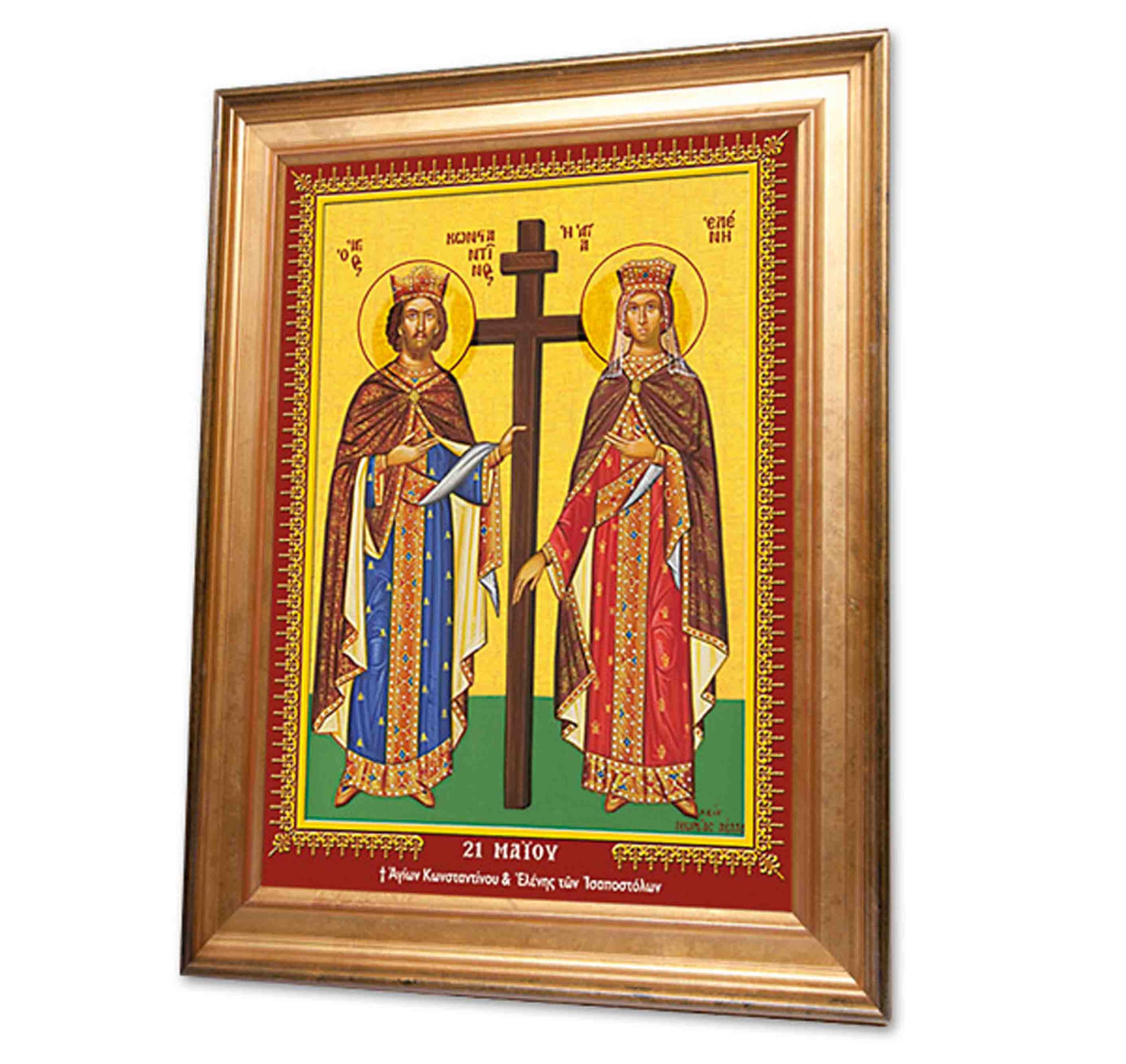 Κορνίζα ξύλινη για την τοποθέτηση των εικόνων του ετήσιου αγιολογίου. Δυνατότητα τοποθέτησης στην κορνίζα ολόκληρου μήνα των εικόνων, με συρταρωτό κάλλυμα στην πίσω όψη. Εξωτερική διάσταση 35×45 cm.