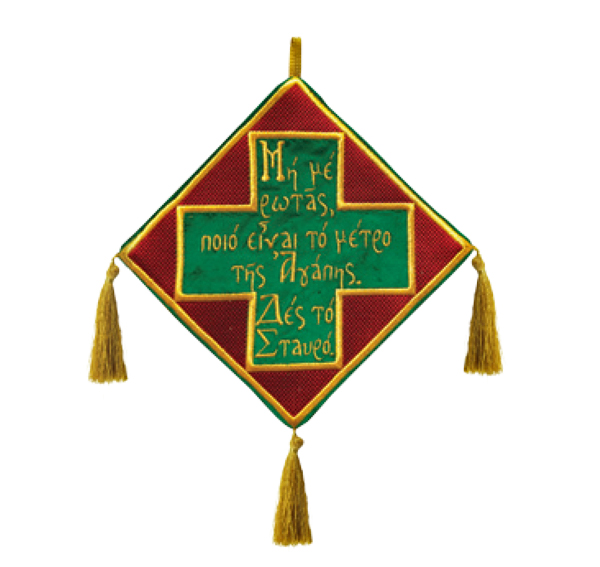 Λαβαράκι κρεμαστό κεντητό με την Αγάπη του Κυρίου μας στον Σταυρό σε σχήμα ρόμβου