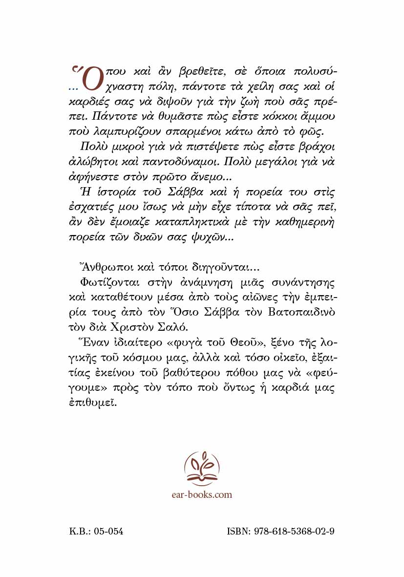 Φωτίζονται στην ανάμνηση μιας συνάντησης και καταθέτουν μέσα από τους αιώνες την εμπειρία τους από τον Όσιο Σάββα τον Βατοπαιδινό τον διά Χριστόν Σαλό.