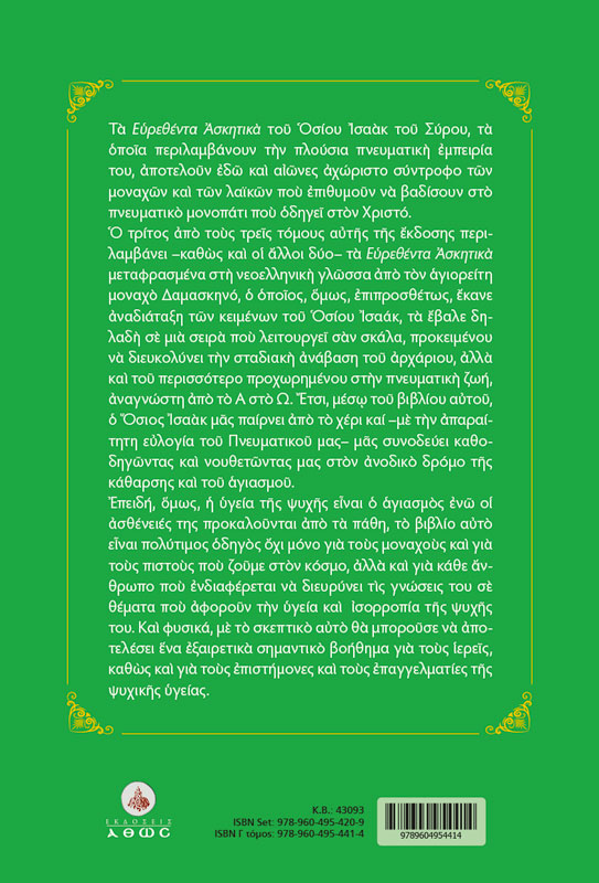 Οσίου Ισαάκ του Σύρου. Τα Ευρεθέντα Ασκητικά. Νεοελληνική απόδοση. Αναδιάταξη – τόμος Γ΄