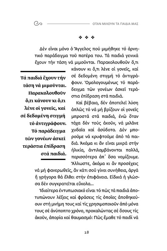 Σκοπός του βιβλίου είναι μέσα από αυθόρμητες φράσεις και χαριτωμένες σκηνές από τη ζωή των παιδιών, να μας παρακινήσει να σπουδάσουμε την αγνή παιδική ψυχή, να διδαχθούμε από την αθωότητά της και να φροντίσουμε με επιμέλεια ό,τι έχει ανάγκη.