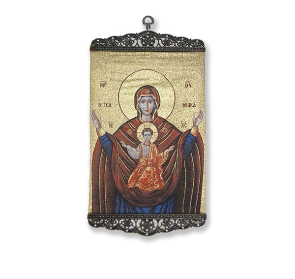 Υφαντή κρεμαστή εικόνα της Παναγίας Τσαμπίκα σε δύο μεγέθη.