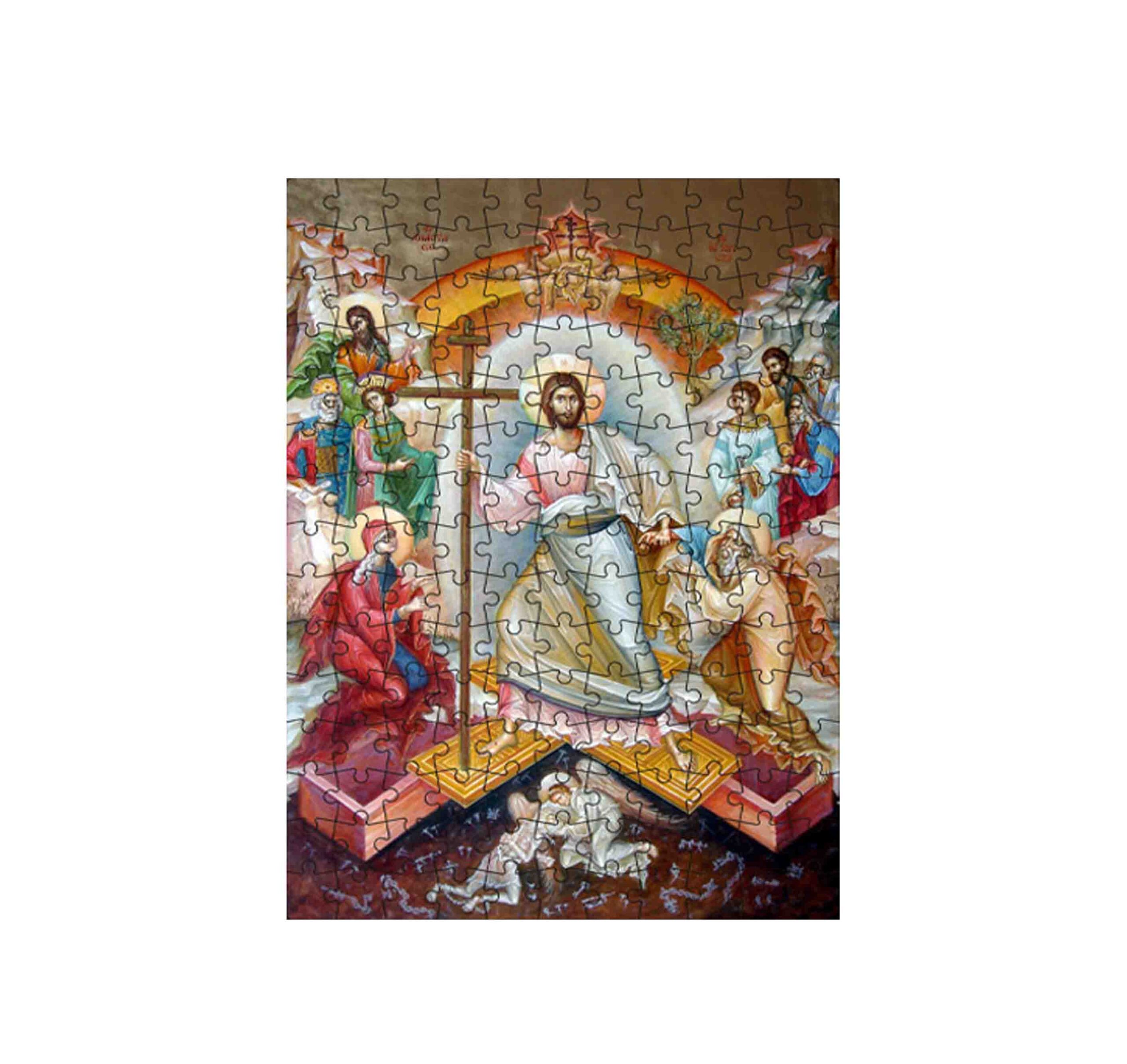 Παζλ για τις ώρες δημιουργικής απασχόλησης των παιδιών με απεικόνιση της «Αναστάσεως του Χριστού» το οποίο συνοδεύεται με κουτί συσκευασίας με απεικόνιση του θέματος.