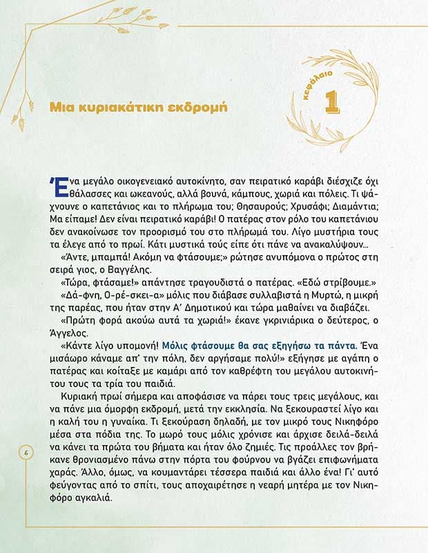 Όλα αυτά τα µυστικά και άλλα πολλά θα προσπαθήσουν να διαλευκάνουν τρία παιδιά και ο πατέρας τους σε µια κυριακάτικη βόλτα τους, που κράτησε παραπάνω απ’ ό,τι υπολόγιζαν. Μυστικά που θα ανακαλύψεις µαζί τους και εσύ και θα σε κάνουν να καταλάβεις ότι η πατρίδα µας είναι τόπος ποτισµένος µε αίµα αγίων και ηρώων.