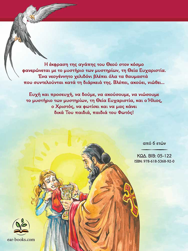 Το βιβλίο παρουσιάζει με γλαφυρό και παραστατικό τρόπο τη Θεία Λειτουργία, με στόχο να τη γνωρίσουν καλύτερα οι μικροί μας αναγνώστες.
