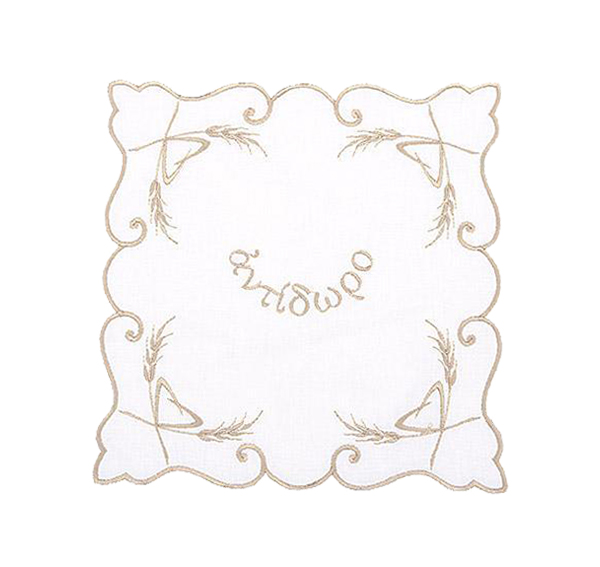 Κεντητό βαμβακερό πετσετάκι για το Αντίδωρο με ασημένια στάχυα, διαστάσεων 21 Χ 21 εκατοστών.