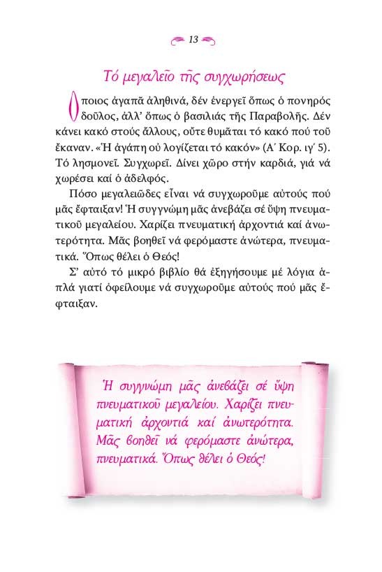 Με αφορμή την Παραβολή των μυρίων ταλάντων, το βιβλίο αναλύει τους λόγους για τους οποίους πρέπει πάντοτε να συγχωρούμε.