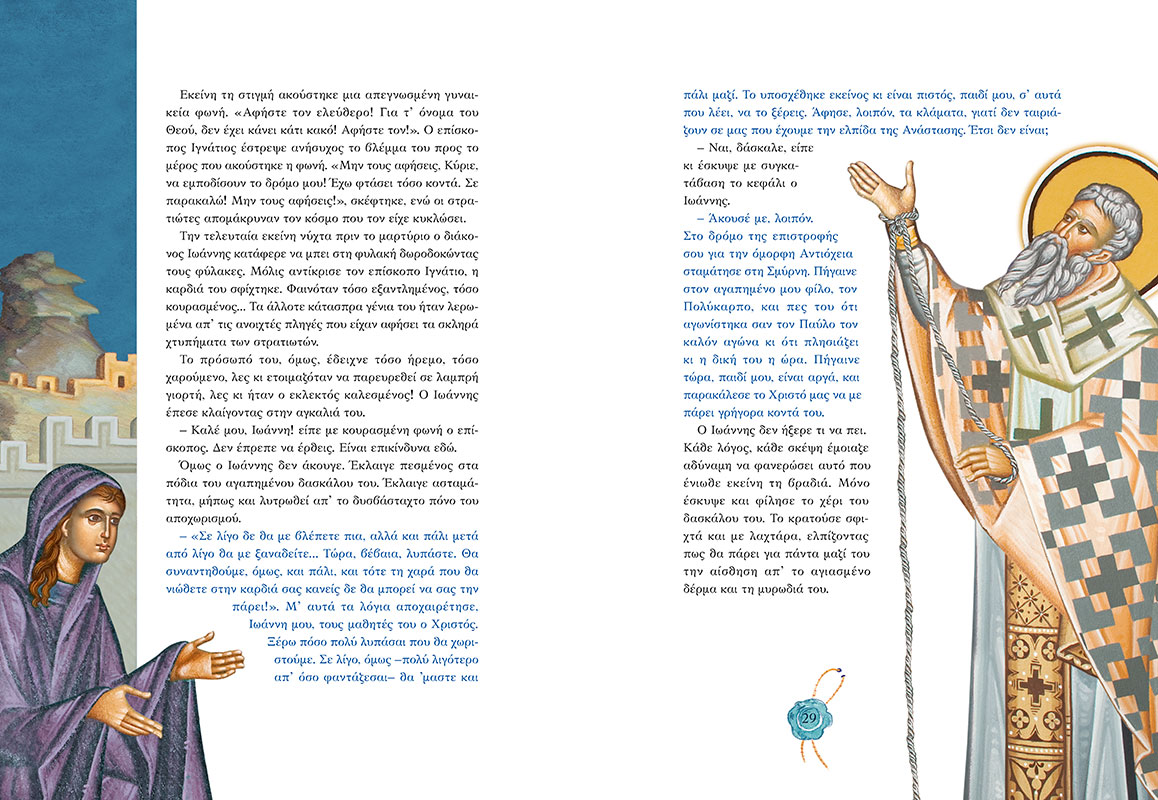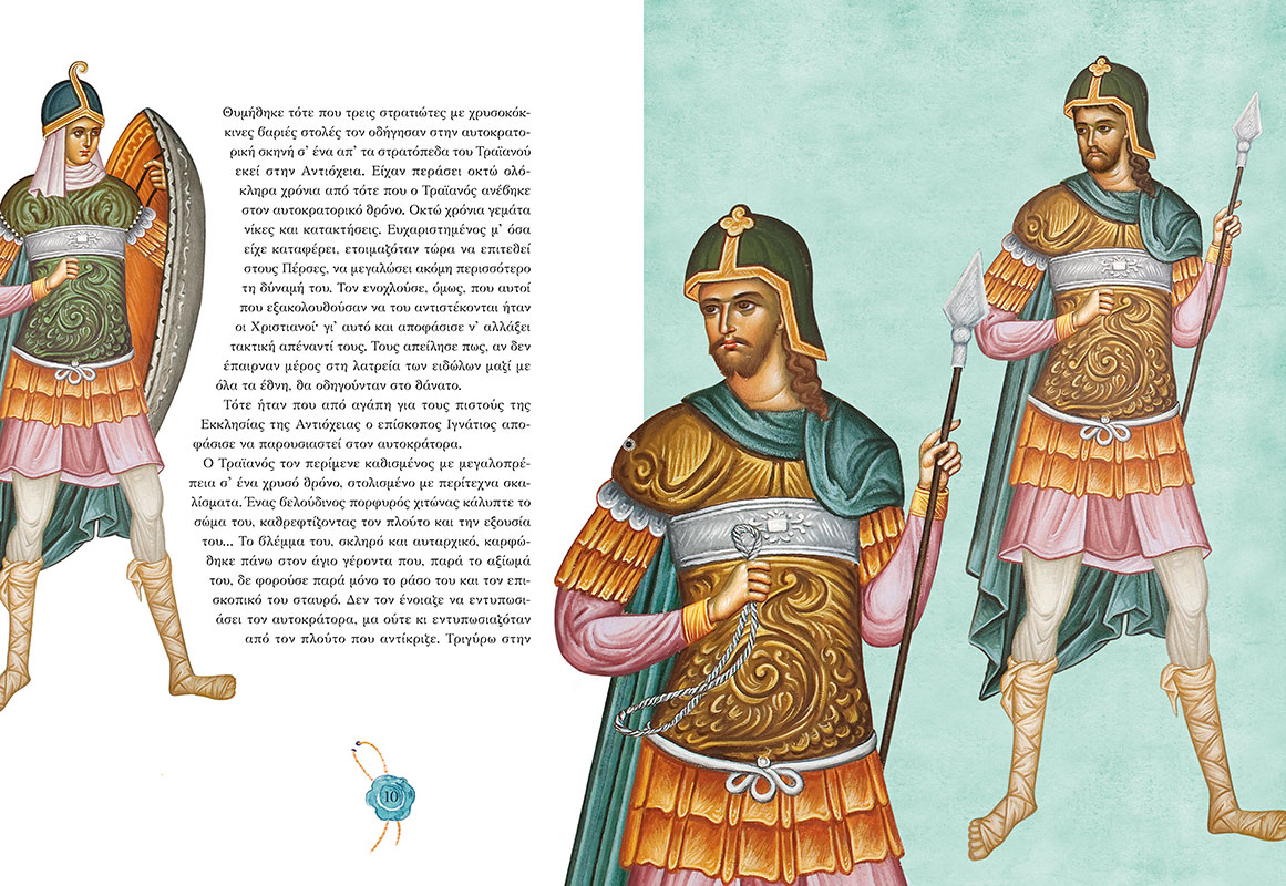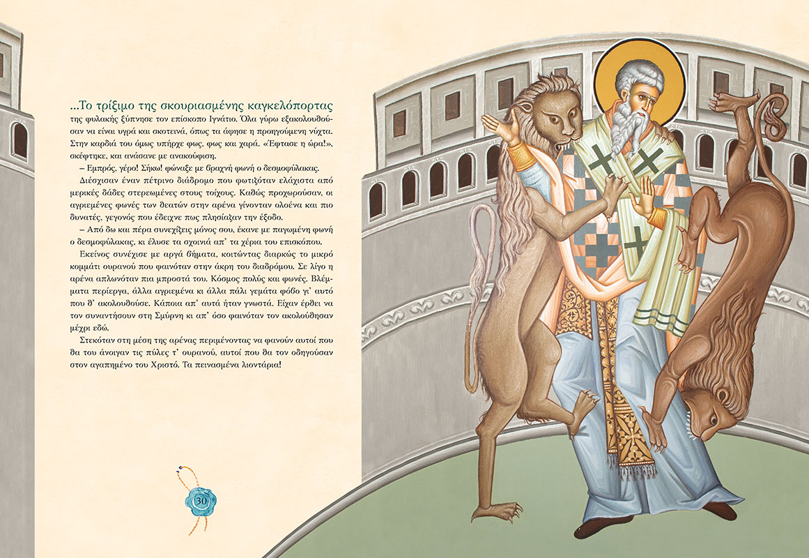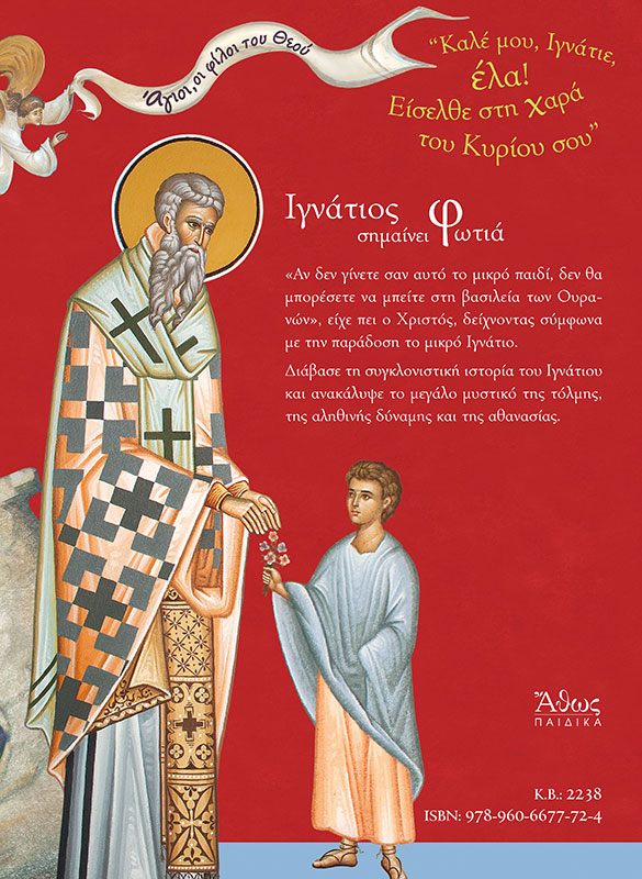«Αν δεν γίνετε σαν αυτο το μικρό παιδι, δεν θα μπορέσετε να μπείτε στη βασιλεία των Ουρανών», είχε πει ο Χριστος, δείχνοντας σύμφωνα με την παράδοση το μικρό Ιγνάτιο. Διάβασε τη συγκλονιστική ιστορία του Ιγνάτιου και ανακάλυψε το μεγάλο μυστικό της τολμης, της αληθινής δύναμης και της αθανασίας. με εικονογράφηση που προέρχεται από λεπτομερειες των τοιχογραφιών του παρεκκλησίου του Αγίου Ιγνατίου που βρίσκεται στην Ιερά Μονή Βηθλεέμ Κορωπίου στα μεσόγεια.