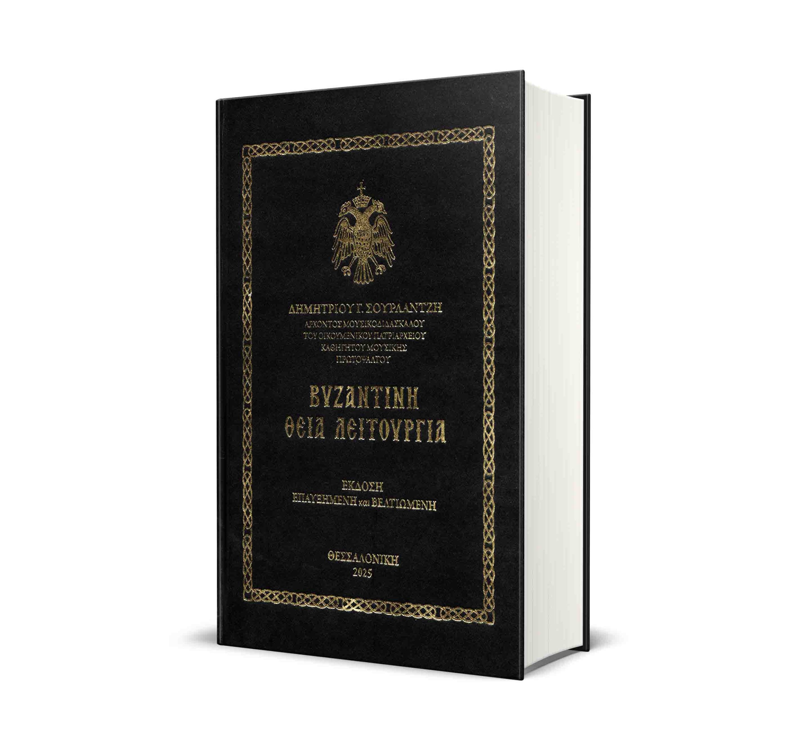 Βυζαντινή Θεία Λειτουργία του αειμνήστου άρχοντος μουσικοδιδασκάλου του Οικουμενικού Πατριαρχείου Δημητρίου Γ. Σουρλαντζή σε έκδοση επαυξημένη και βελτιωμένη με επιμέλεια με του δρος Ιωάννη Λιάκου.