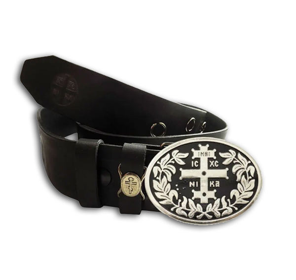 Ζώνη Μοναχών από γνήσιο δέρμα με χαραγμένο προφίλ. Οι κρίκοι είναι φτιαγμένοι από χυτό ζάμα, ώστε να μην μπορούν να ανοίξουν. Το δέσιμό τους γίνεται με κηρονήμα αντί για δερματάκι που σχίζεται πιο εύκολα. Υπάρχει δυνατότητα εναλλαγής της πόρπης με ένα απλό ξεκούμπωμα των τρουκς που βρίσκονται στο τελείωμα της ζώνης.