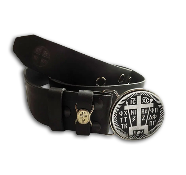 Ζώνη Μοναχών από γνήσιο δέρμα με χαραγμένο προφίλ. Οι κρίκοι είναι φτιαγμένοι από χυτό ζάμα, ώστε να μην μπορούν να ανοίξουν. Το δέσιμό τους γίνεται με κηρονήμα αντί για δερματάκι που σχίζεται πιο εύκολα. Υπάρχει δυνατότητα εναλλαγής της πόρπης με ένα απλό ξεκούμπωμα των τρουκς που βρίσκονται στο τελείωμα της ζώνης.
